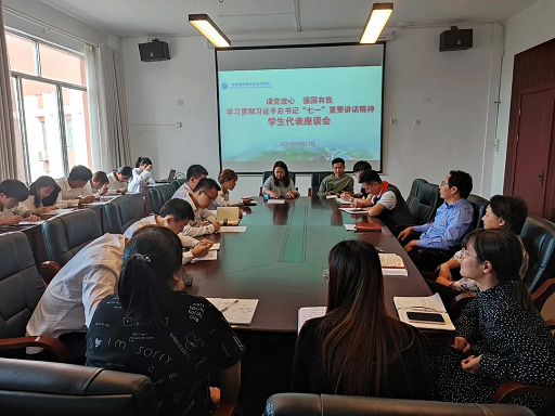 會上,學生代表交流了學習習近平總書記“七一”重要講話精神的認識、體會和感悟,充分表達了“請黨放心,強國有我”的赤誠初心和青春建功、永跟黨走的堅定信念。同時,學生代表結合自身學習和工作實際,圍繞學校團委、學生會等學生組織的建設和發(fā)展提出了實質性的建議。段為松充分肯定了學生代表們關心學校發(fā)展的大局意識和主人翁精神,并現(xiàn)場就相關問題進行了交流。