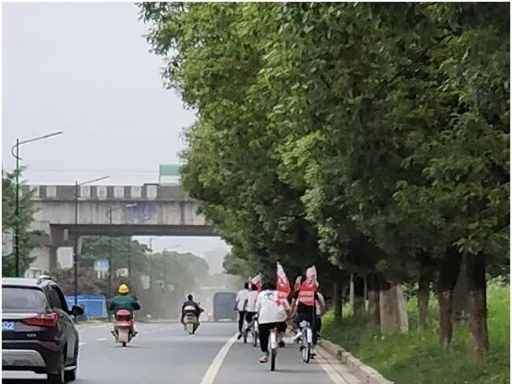 ▲學(xué)校志愿者開展防溺水巡河打卡活動