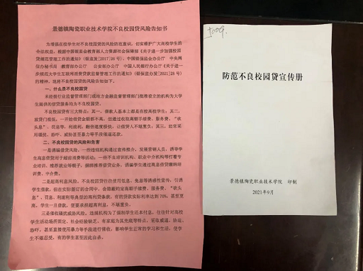 ▲學(xué)校印發(fā)防范不良校園貸宣傳冊、校園貸風(fēng)險告知書,散發(fā)宣傳資料