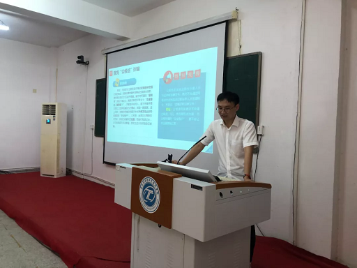▲9月14日晚,浮梁縣公安局反詐中心段昱昊警官為學(xué)校新生進(jìn)行防電信詐騙、防校園貸知識講座。