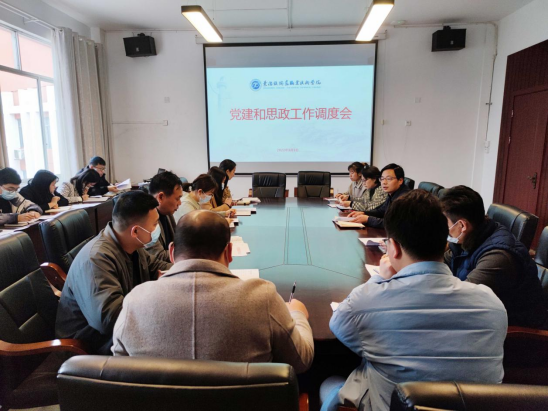 ? 3月1日下午,我校在行政樓四樓會(huì)議室召開(kāi)2022年度黨建思政工作部署會(huì),對(duì)2022年黨建和思想政治工作主要任務(wù)進(jìn)行部署安排。校黨委書(shū)記段為松,黨委副書(shū)記、副校長(zhǎng)王玉萍,黨委委員、組織部長(zhǎng)魏薇,黨委委員、宣傳統(tǒng)戰(zhàn)部長(zhǎng)段立志,教務(wù)處、學(xué)生工作處、團(tuán)委、思政部、工會(huì)、后勤處、保衛(wèi)處等部門(mén)負(fù)責(zé)人,各院部負(fù)責(zé)人、各黨支部書(shū)記、專(zhuān)職副書(shū)記參加會(huì)議。會(huì)議由段為松主持。