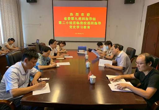 9月27日,黨史學習教育省委第九巡回指導組第二小組組長、省教育廳二級巡視員陳新、副組長陶風華、聯絡員萬偉韜、成員謝曉文一行蒞臨我校檢查指導黨史學習教育開展情況。