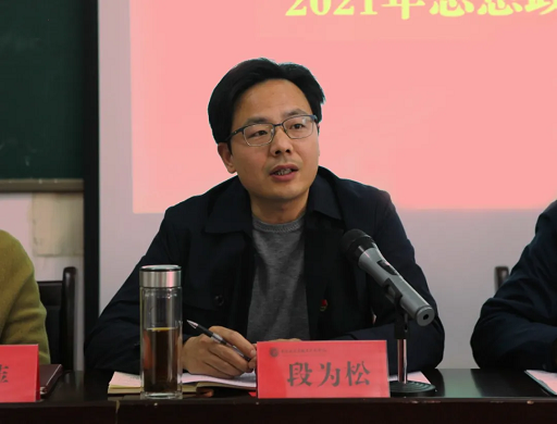 段為松在講話中強(qiáng)調(diào),一要從認(rèn)識(shí)到位中提高政治站位。要深入學(xué)習(xí)貫徹習(xí)近平總書記在黨史學(xué)習(xí)教育動(dòng)員大會(huì)上重要講話精神,深刻領(lǐng)會(huì)習(xí)近平總書記關(guān)于教育的重要論述,貫徹落實(shí)全國、全省高校思想政治工作會(huì)議、教育大會(huì)、黨的建設(shè)工作會(huì)議精神和相關(guān)政策文件要求,把立德樹人成效作為檢驗(yàn)學(xué)校一切工作的根本標(biāo)準(zhǔn),把黨史學(xué)習(xí)教育融入立德樹人全過程,在加強(qiáng)學(xué)習(xí)中充分把握工作標(biāo)準(zhǔn),在執(zhí)行標(biāo)準(zhǔn)中不斷提高政治站位。二要在敢于擔(dān)責(zé)中履行崗位職責(zé)。思想政治工作“兩張責(zé)任清單”已經(jīng)非常明確,既有“低標(biāo)”、也有“高標(biāo)”,整改臺(tái)賬包括4個(gè)方面、15個(gè)問題和43項(xiàng)措施;工作清單是根據(jù)實(shí)施意見細(xì)化分解的,包括6個(gè)方面、17項(xiàng)任務(wù)和100項(xiàng)措施。各責(zé)任部門、責(zé)任人務(wù)必要聚焦本部門的主責(zé)主業(yè),知責(zé)于心、擔(dān)責(zé)于身、履責(zé)于行,發(fā)揚(yáng)“三牛精神”,對(duì)標(biāo)對(duì)表,不折不扣推進(jìn)落地見效。三要在“痕跡管理”中加強(qiáng)規(guī)范管理?!昂圹E管理”是工作過程的記錄,也是一種工作方法。要力戒形式主義的“痕跡管理”,遵循“提出計(jì)劃、執(zhí)行過程、總結(jié)效果”的邏輯扎實(shí)做好各項(xiàng)工作,按照“重點(diǎn)在平時(shí)、關(guān)鍵在積累”要求黨政辦公室要牽頭加強(qiáng)各類收發(fā)文件的規(guī)范管理和檔案存檔,做到“文必有號(hào)、文必有存、有據(jù)可依、有文可查”,推動(dòng)學(xué)校管理在總結(jié)中不斷提高。